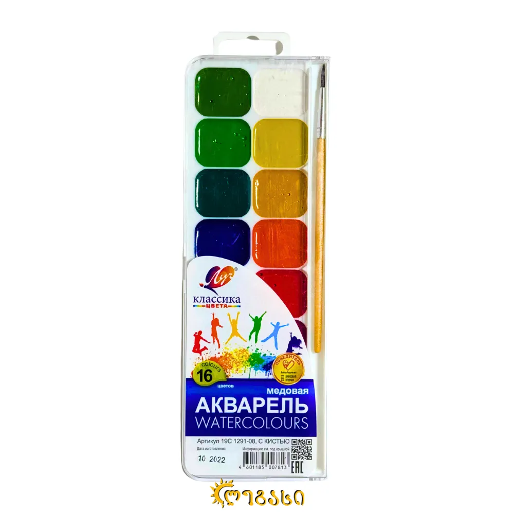 აკვარელი (16 ფერი) ფუნჯით LUCH "Classic”