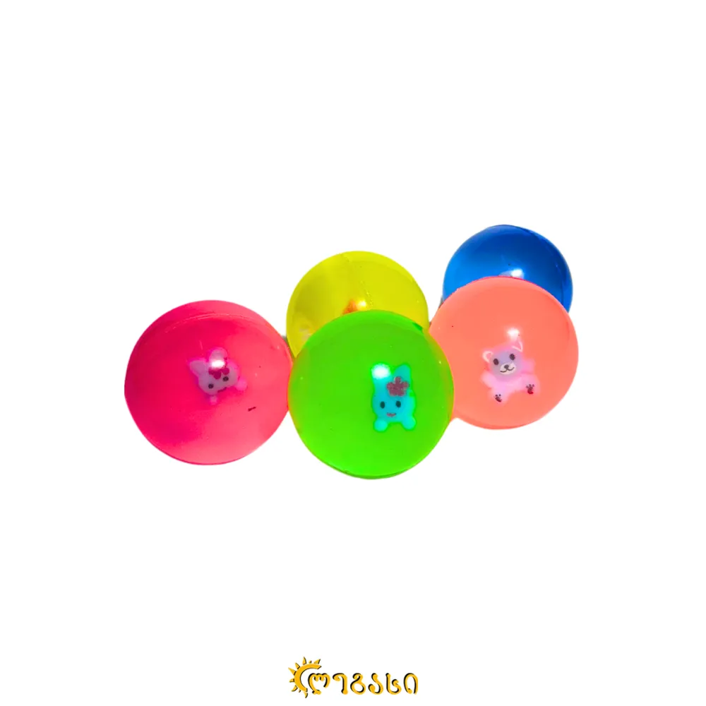 კაუჩუკის ფერადი ბურთები, ხუთ სხვადასხვა ფერში.